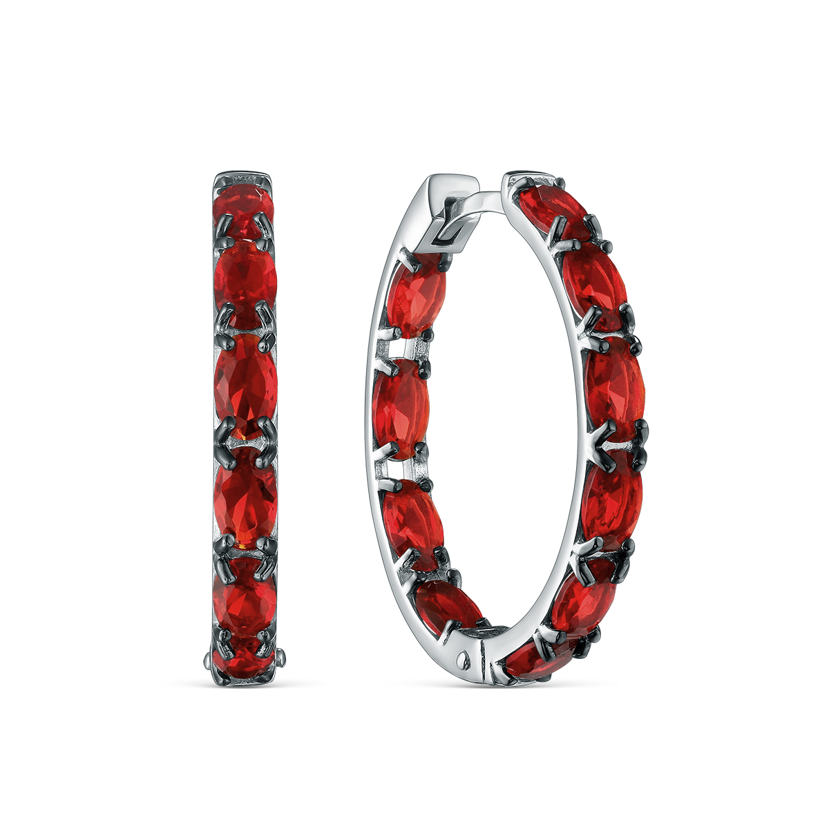 Серьги конго из родированного серебра 925 пробы декорированы дорожками из кварца цвета рубин. Яркое и изысканное украшение из серебра с привлекательным сиянием камней станет прекрасным аксессуаром для женщины, и подчеркнет элегантность и чувство стиля владелицы. Приобретайте ювелирное украшение в подарок по выгодной цене в магазинах Мир Золота.