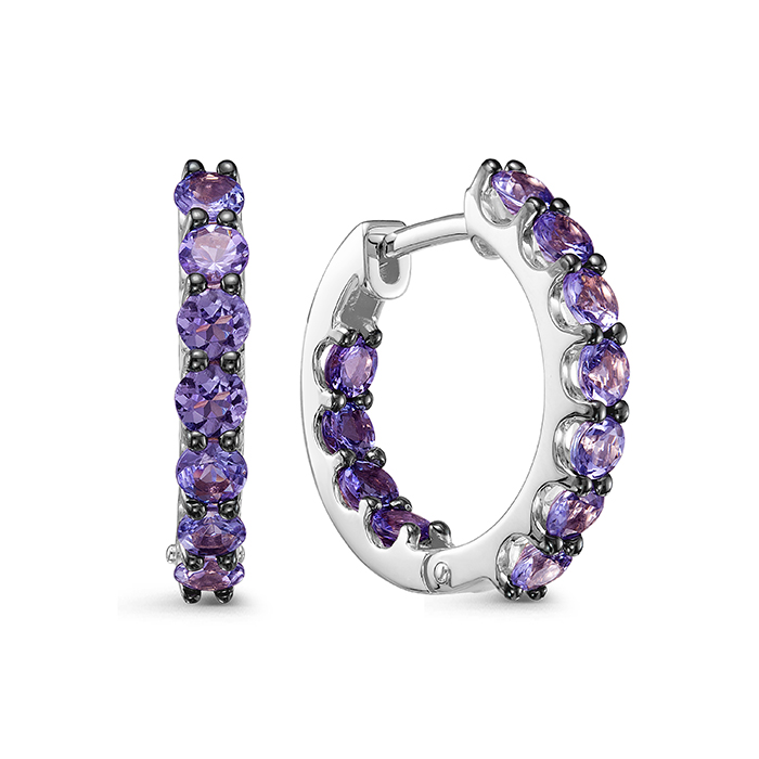 Эффектные серьги конго из белого золота 585 пробы украшены дорожками из танзанитов классической формы огранки. Украшение с завораживающим сиянием цветных камней станет стильным акцентом современного образа. Универсальный дизайн подойдет как для повседневной носки, так и для особых случаев. Приобретайте серьги по выгодной цене в магазинах Мир Золота.