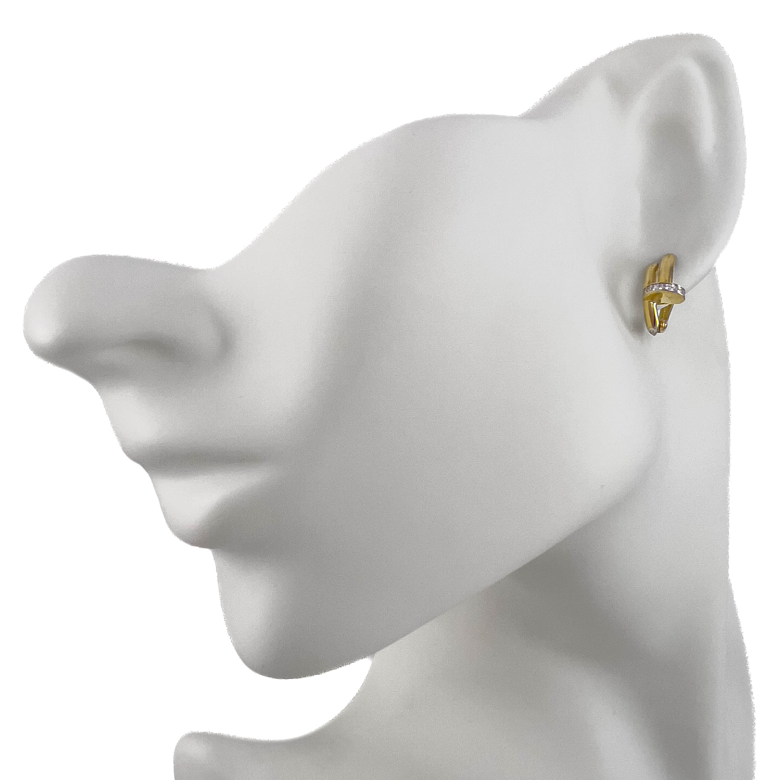 Серьги конго с дорожками ярких фианитов выполнены из красного золота 585 пробы. Привлекательные серьги с изумительным блеском прозрачных камней в закрепке белого золота аккуратно и стильно смотрятся, и станут великолепным завершением современных образов владелицы. Приобретайте актуальные серьги конго для своей коллекции или в подарок, выгодно в магазинах Мир Золота.
