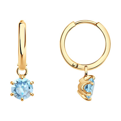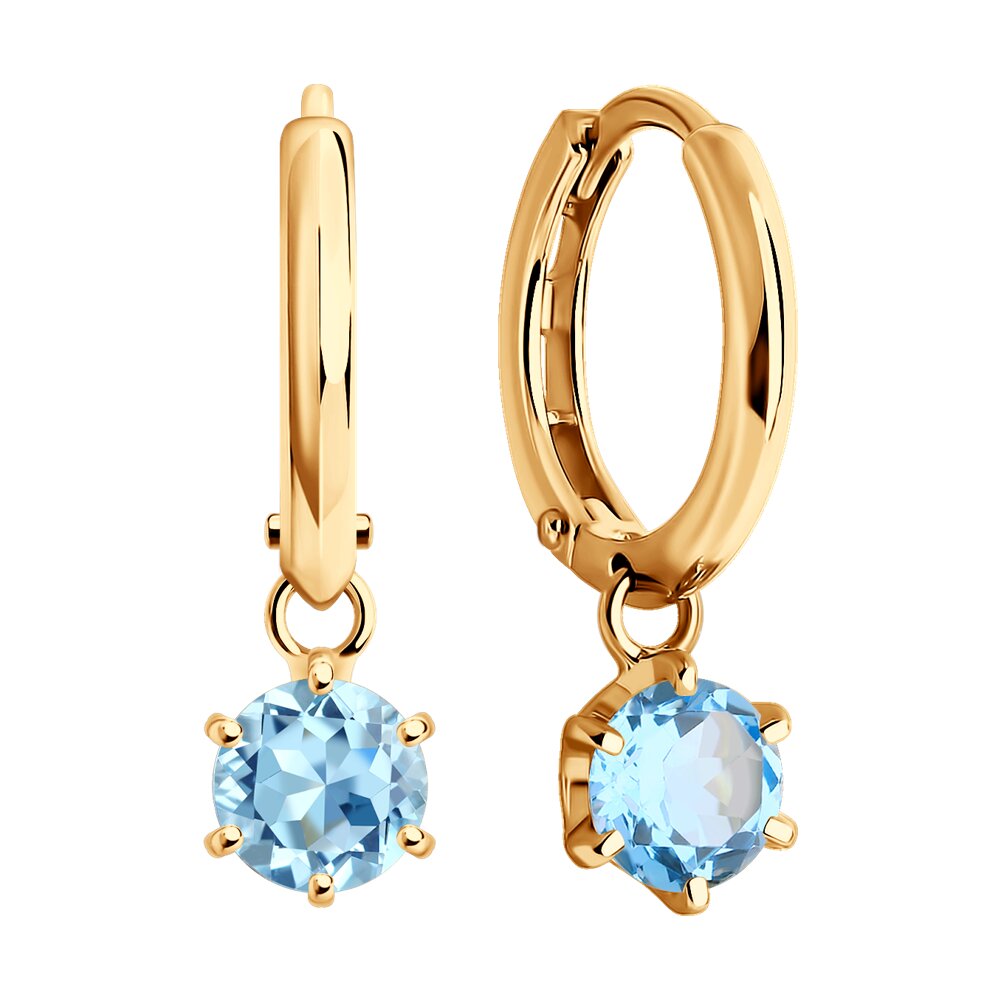 Серьги конго с подвесками с нежно-голубыми топазами выполнены из красного золота 585 пробы. Аккуратные серьги с изумительным прозрачным блеском небесно-голубых камней изящно смотрятся на ушке, и дополнят женский образ особым шармом и очарованием. Приобретайте серьги для прекрасного подарка по выгодным ценам в магазинах Мир Золота.