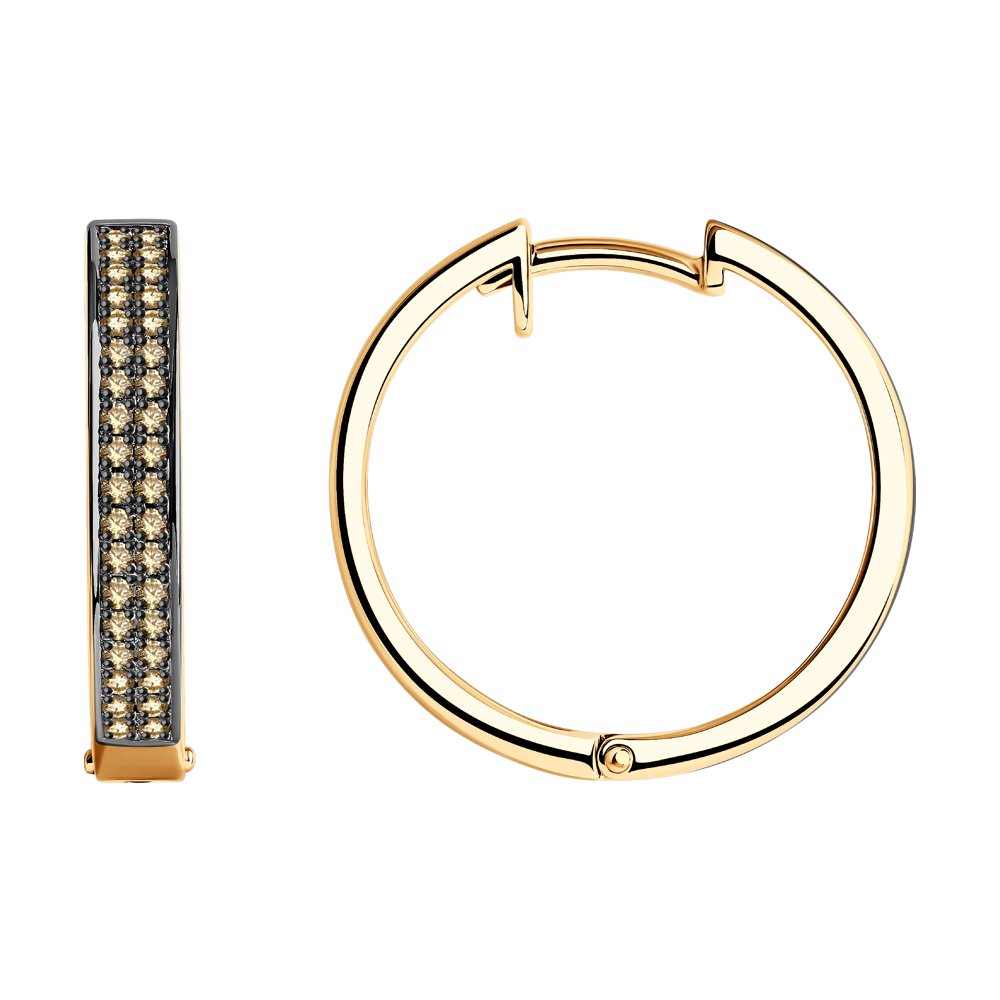 Превосходные серьги из красного золота 585 пробы декорированы дорожками роскошных бриллиантов коньячного оттенка. Элегантное украшение с играющими переливами драгоценных камней покоряет своим неповторимым блеском, и эффектно дополнит стильный образ современной леди, подчеркнув безупречный вкус владелицы. Приобретайте серьги с комфортным и практичным замком по выгодным ценам в магазинах Мир Золота.
