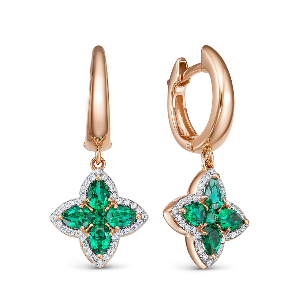 —Серьги из красного золота с наноситал-изумрудами и фианитами