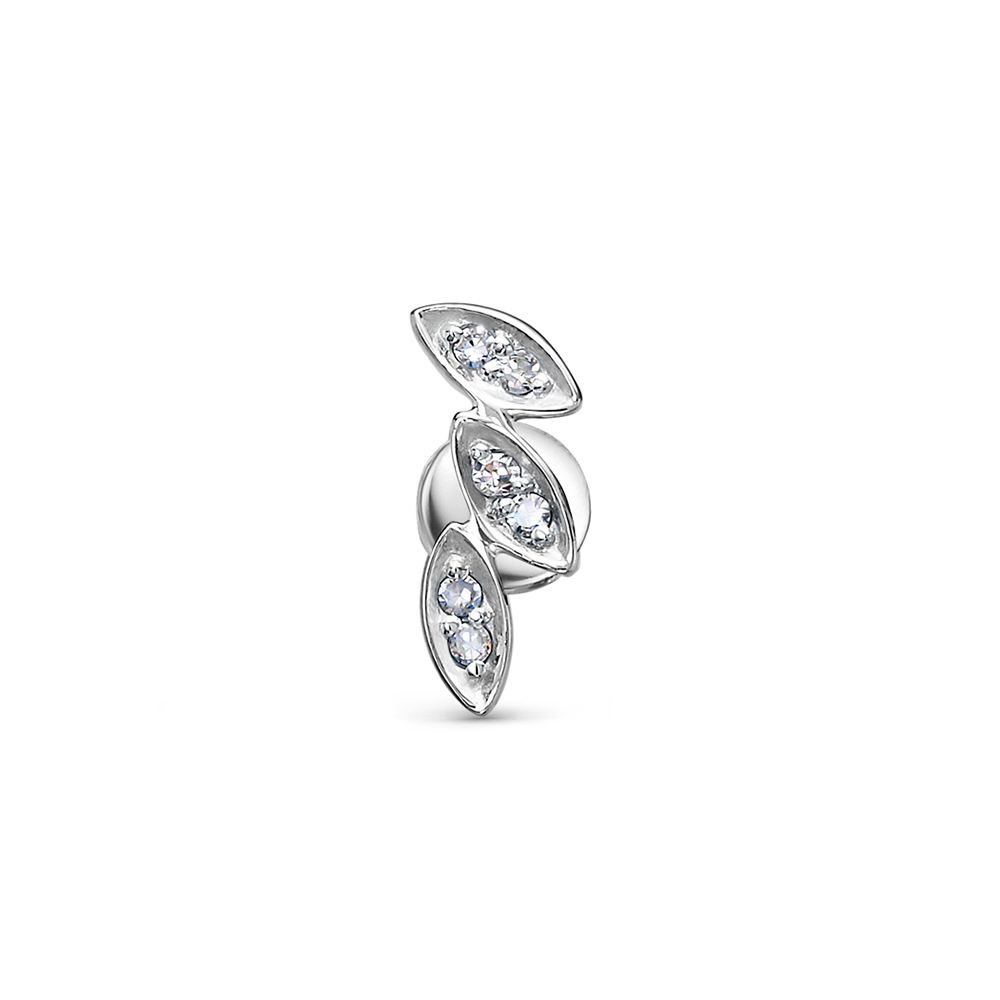 Изящная серьга-пирсинг выполнена из белого золота 585 пробы и украшена бриллиантами. Пирсинг нежного дизайна с изысканным блеском 6 драгоценных бриллиантов станет ярким акцентом вашего образа. Серьга идеальна для дополнительных ушных проколов и будет отлично сочетаться с другими украшениями. Приобретайте украшение по выгодным ценам в магазинах Мир Золота.