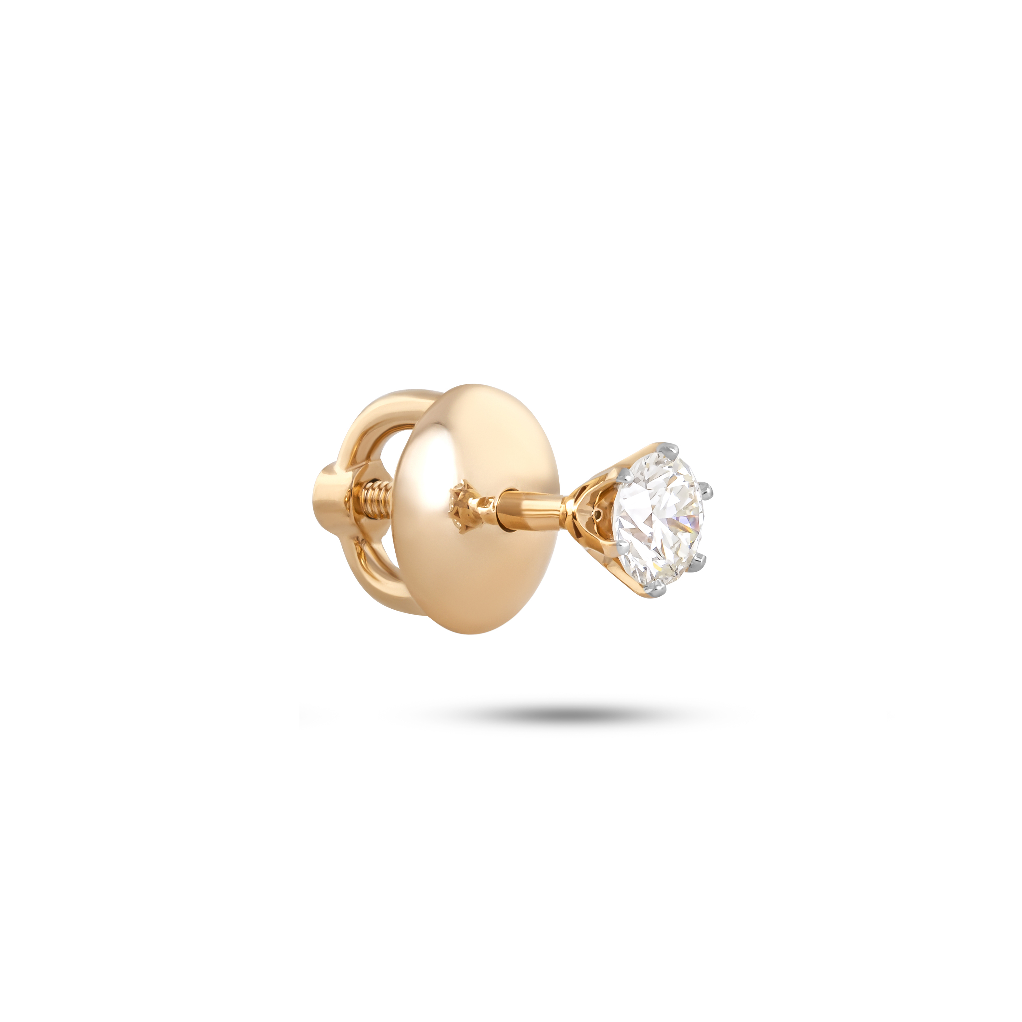 Одиночная серьга-пусет выполнена из роскошного красного золота, которое придает изделию теплый и благородный оттенок. Серьга имеет компактные размеры, благодаря чему она смотрится легко и изящно, не перегружая образ. В центре изделия расположен яркий бриллиант, который сверкает всеми своими гранями, привлекая внимание. Камень аккуратно закреплен в золотой оправе, что обеспечивает надежную фиксацию и подчеркивает его чистоту и блеск.