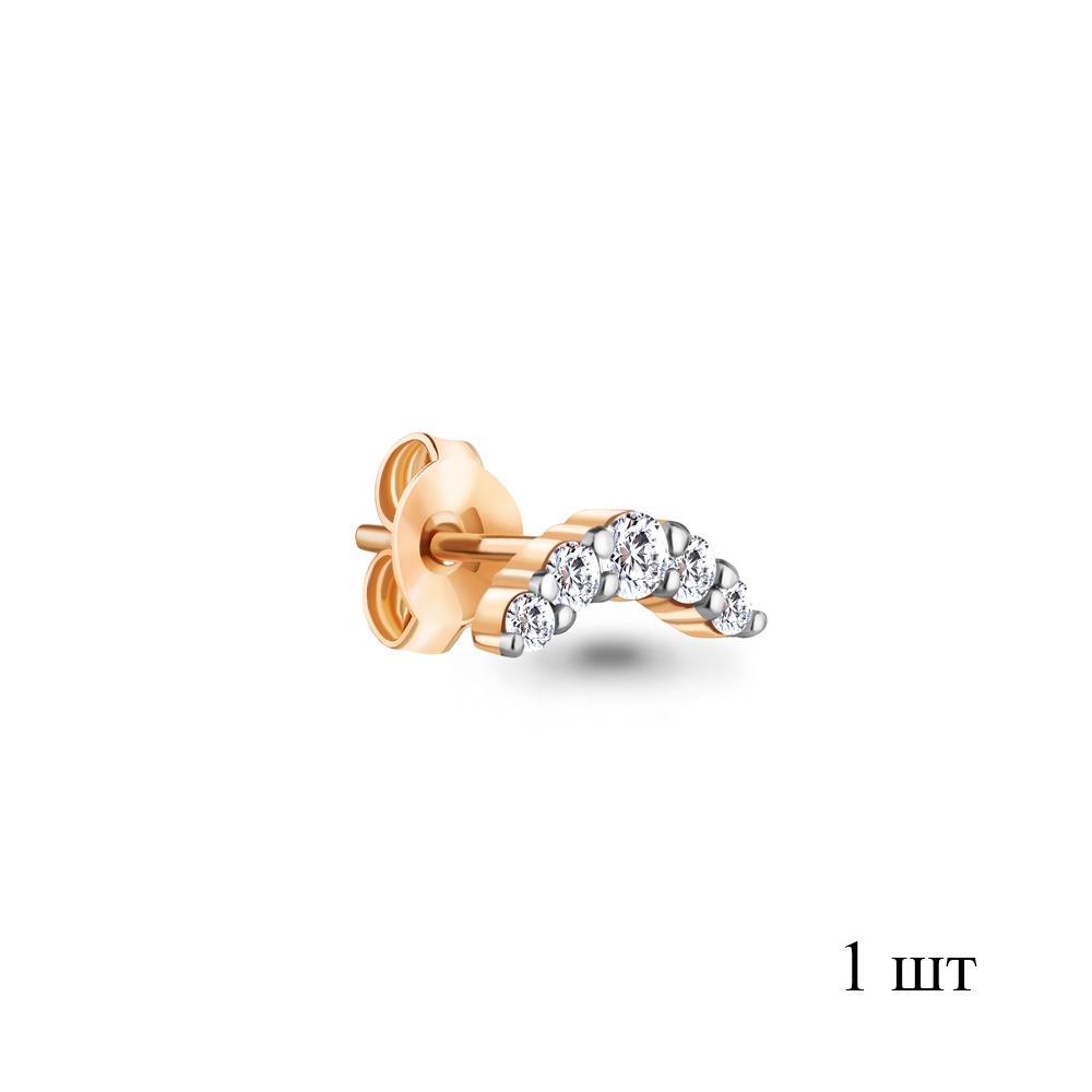 Одиночная серьга-пусет из красного золота с фианитами — это стильный и современный аксессуар. Она привлекает внимание блестящими камнями, которые гармонично сочетаются с теплым оттенком металла. Такая серьга подчеркнет вашу индивидуальность и станет изысканным дополнением к любому образу.