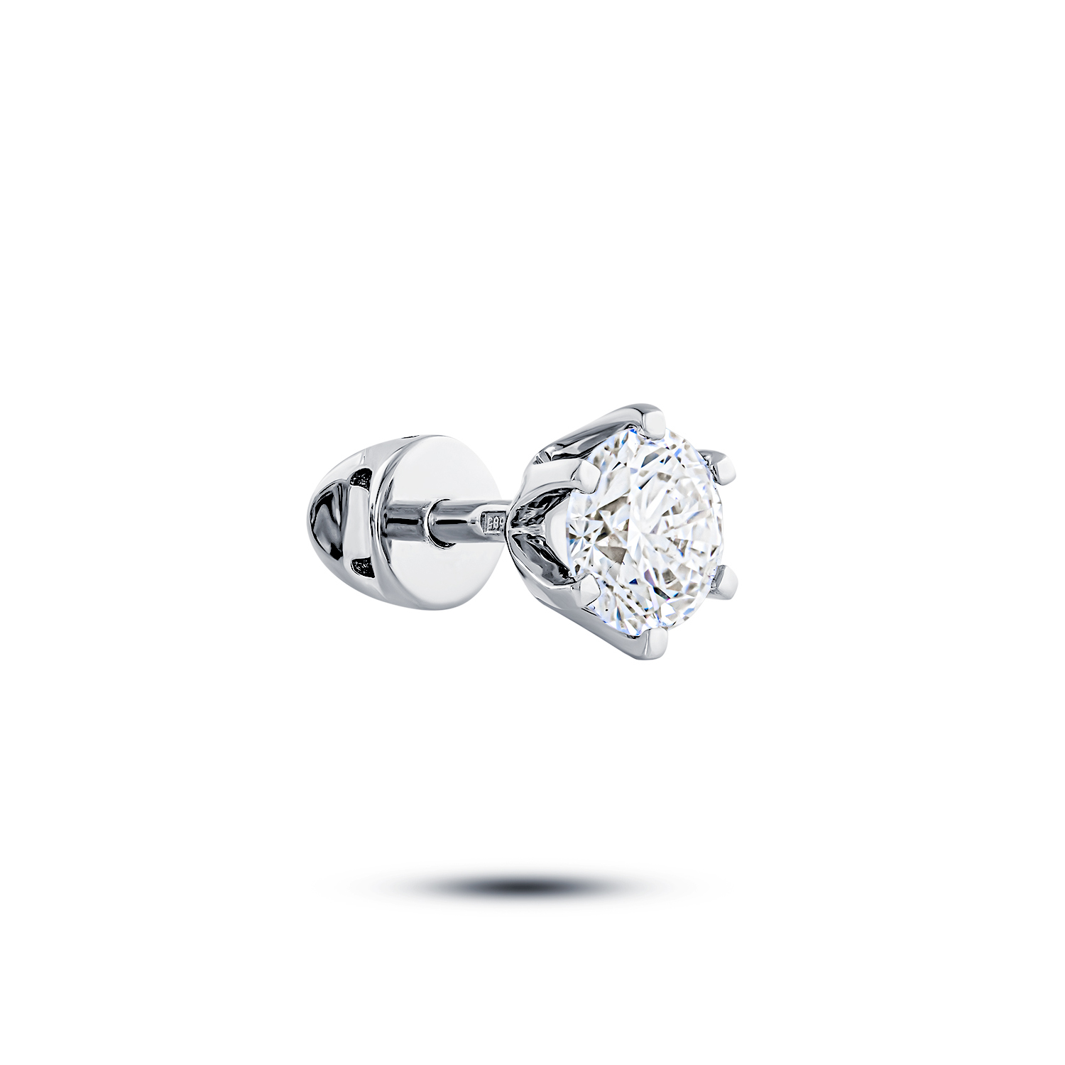 Стильная серьга-пусет из белого золота с выращенным бриллиантом – это идеальный выбор для тех, кто предпочитает минимализм и элегантность. Она станет стильным акцентом в любом образе, будь то деловой костюм или вечернее платье. Это украшение можно носить как самостоятельно, так и в паре с другой сережкой, создавая уникальный и неповторимый look.