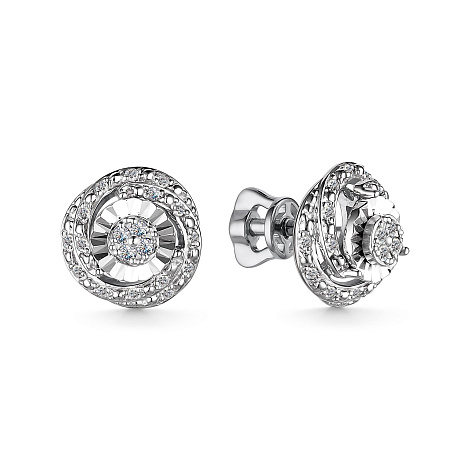 Восхитительные серьги-пусеты из белого золота 585 пробы, украшенные бриллиантами. Серьги выполнены в оригинальном изысканном дизайне, 38 сияющих бриллиантов составляют декор пусетов. Украшение со сверкающими бриллиантами, подчеркнутыми благородным сиянием золота, позволит создать по-настоящему великолепный образ. Приобретайте серьги по выгодным ценам в магазинах Мир Золота.