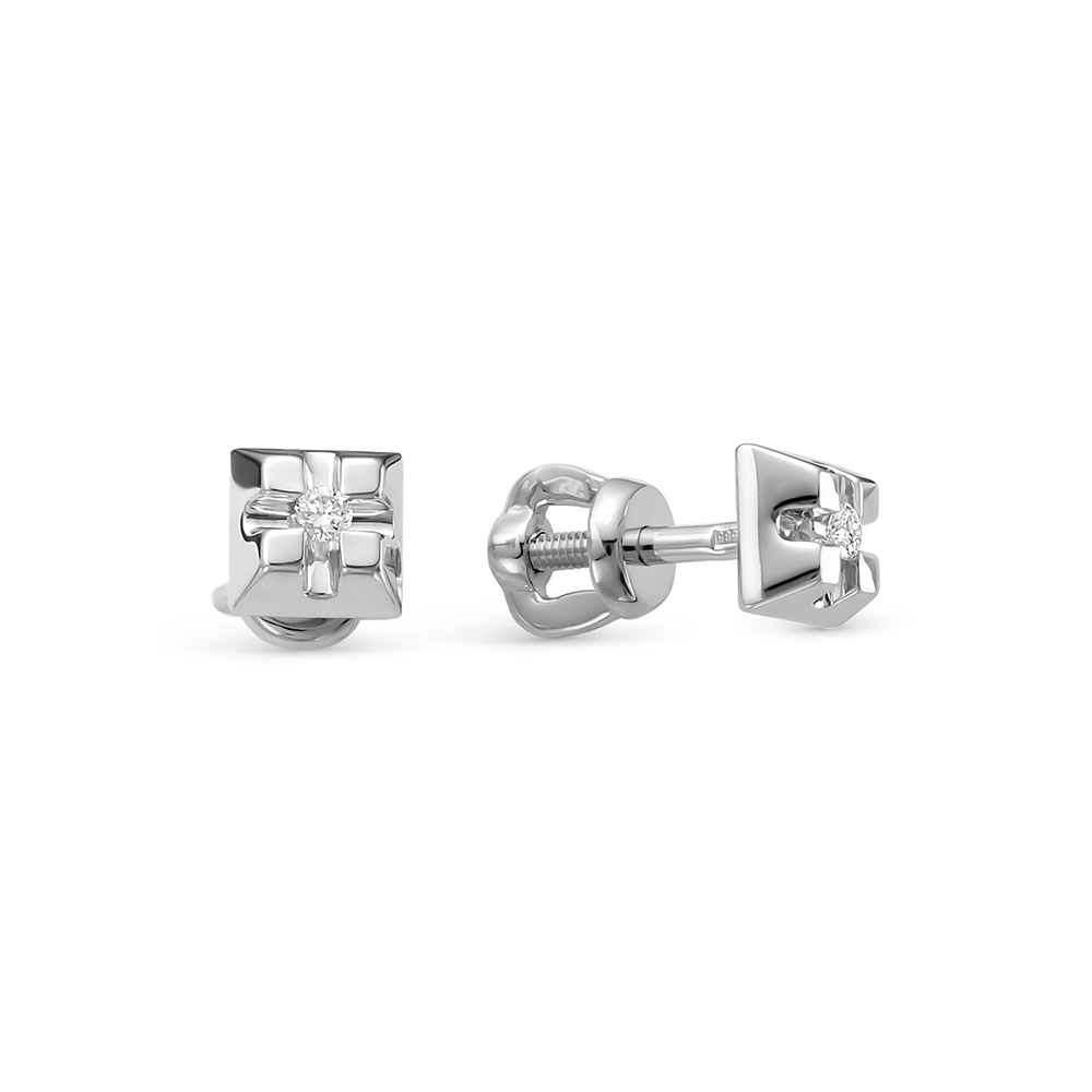 Стильные серьги-пусеты из белого золота 585 пробы с бриллиантами. Пусеты декорированы прозрачными бриллиантами в эффектной закрепке, белое золото выгодно подчеркивает искристое сияние прозрачных бриллиантов. Прекрасные серьги сделают повседневный образ женщины более привлекательным. Покупайте серьги-пусеты выгодно в магазинах Мир Золота.