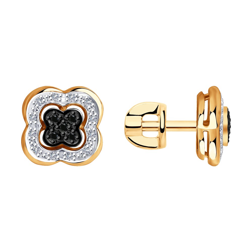 Очаровательные серьги-пусеты из красного золота 585 пробы с черными и прозрачными бриллиантами. Чудесные пусеты с оригинальным дизайном в форме клевера - счастливого символа удачи, с эффектным контрастным сиянием черных и прозрачных камней, оценят поклонницы нескучной классики. Приобретайте стильные серьги-пусеты по выгодным ценам в магазинах Мир Золота.