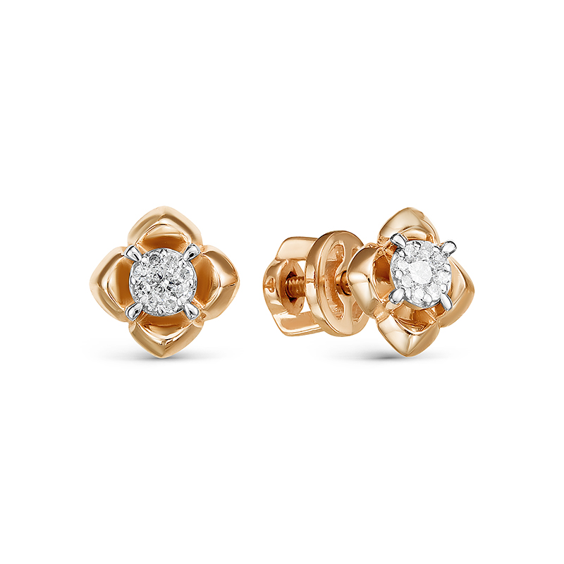 Очаровательные серьги-пусеты выполнены из красного золота 585 пробы в привлекательном дизайне, украшены прозрачными бриллиантами. Кристальное сияние 18 драгоценных камней дополняет изящный дизайн пусетов. Прекрасные серьги станут идеальным дополнением нежного женственного образа. Приобретайте серьги по выгодным ценам в магазинах Мир Золота.