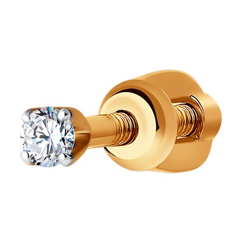 Одиночная серьга с натуральным бриллиантом выполнена из красного золота 585 пробы. Миниатюрная нежная серьга идеальна для дополнительного прокола. Красивый аксессуар с сияющим бриллиантом станет стильным дополнением женского образа. Приобретайте чудесное украшение по выгодным ценам в магазинах Мир Золота.
