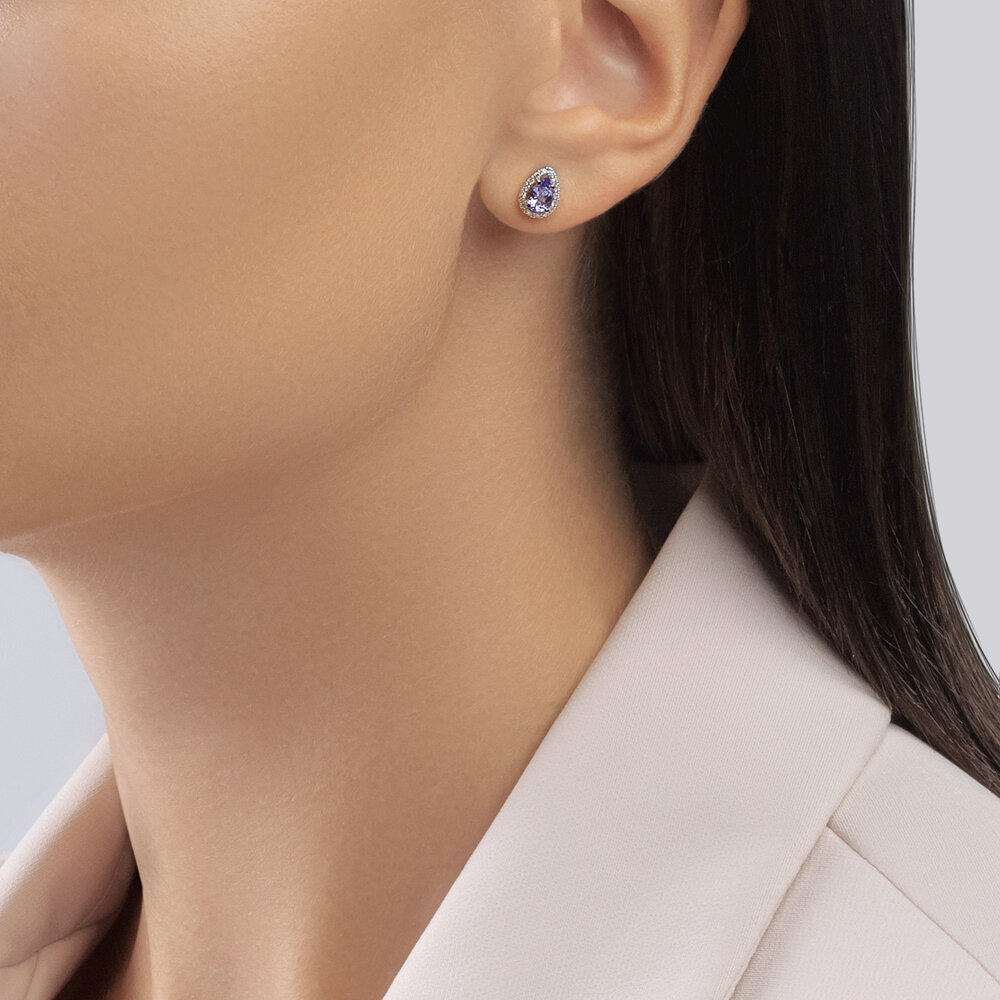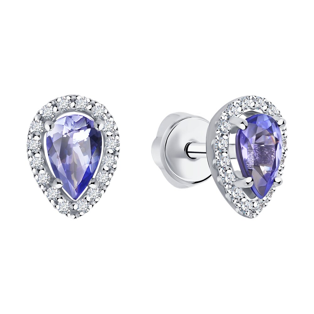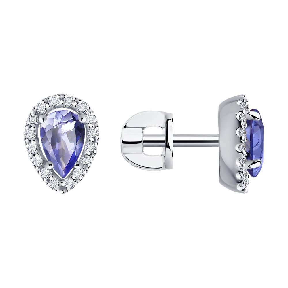 —Серьги пусеты из белого золота с танзанитами и бриллиантами