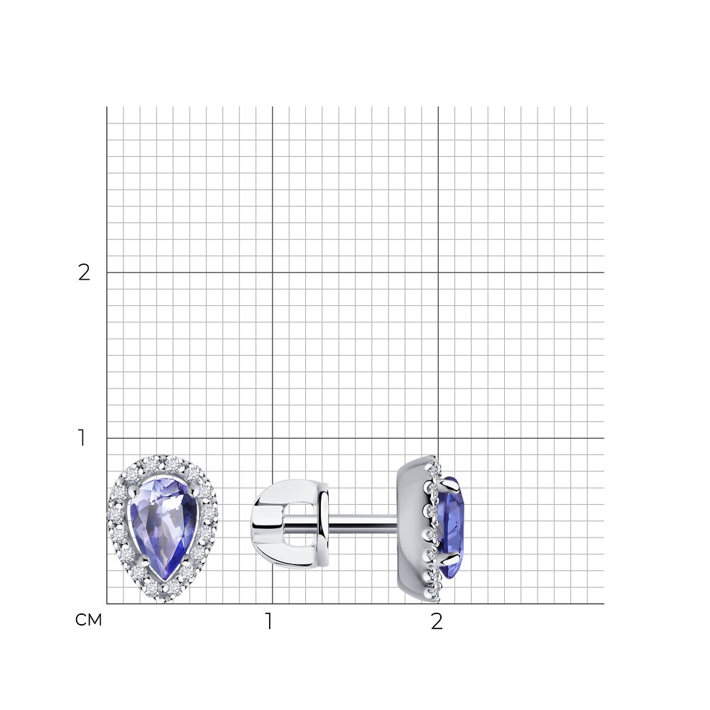 Серьги пусеты из белого золота с танзанитами и бриллиантами