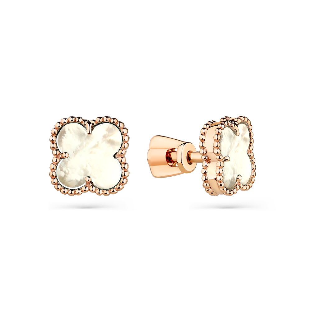 —Серьги пусеты «Клевер» из красного золота с перламутром