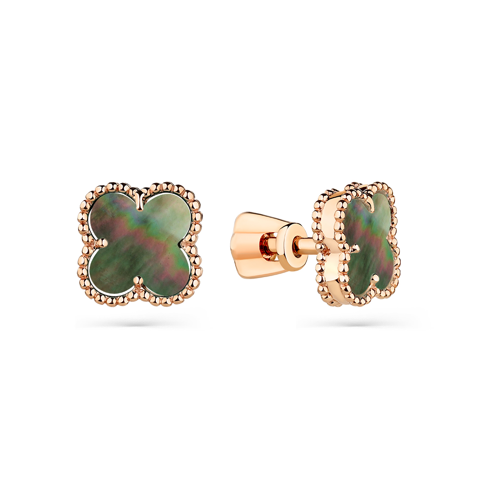 —Серьги пусеты «Клевер» из красного золота с перламутром