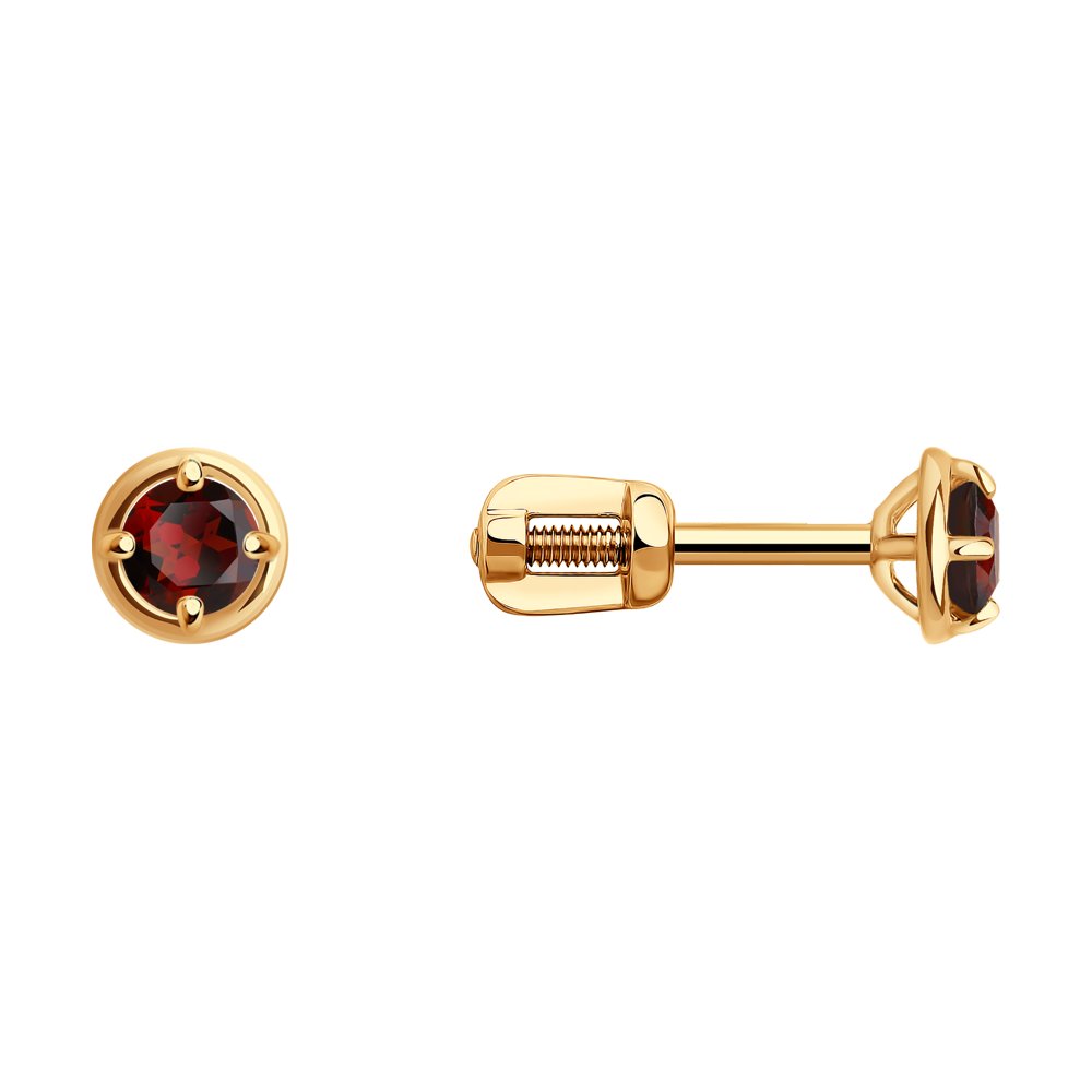 Миниатюрные серьги пусеты простого дизайна, с натуральными камнями гранатов, выполнены из красного золота 585 пробы. Минималистичное украшение с цветным акцентом камней станет универсальным и удобным аксессуаром на каждый день, подходящим под любой выбранный образ и стиль. Приобретайте ювелирное украшение для себя или в подарок по выгодной цене в магазинах Мир Золота.