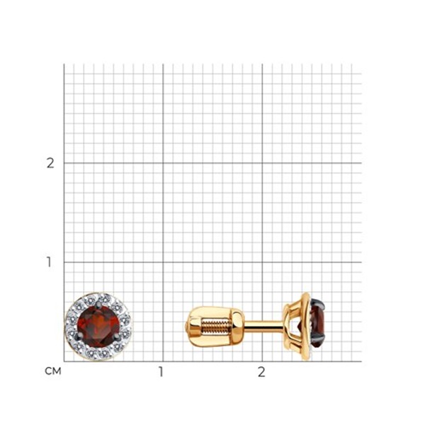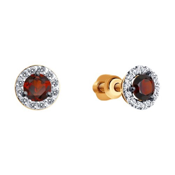 —Серьги пусеты из красного золота с гранатами м фианитами
