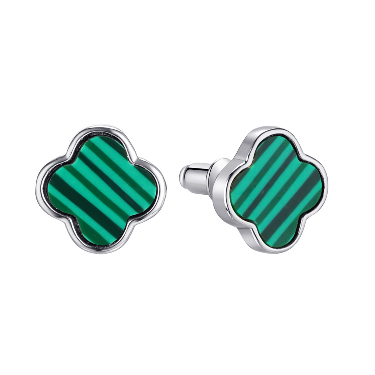 —Серьги пусеты из серебра с искусственным малахитом