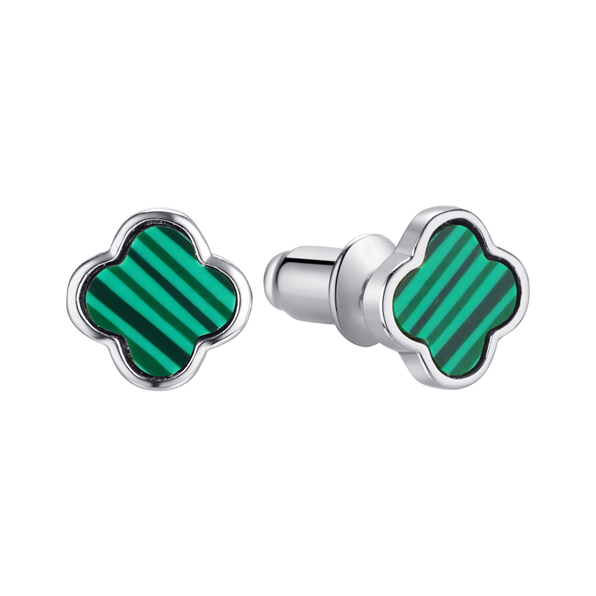 —Серьги пусеты из серебра с искусственным малахитом