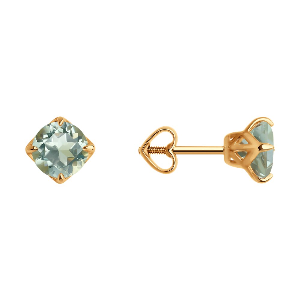 Серьги пусеты с празиолитом, выполненные из красного золота 585 пробы, изящно подчеркнут женскую красоту и очарование. Очень нежное и женственное украшение, с камнями прозрачного зеленого оттенка, заметно освежит своим удивительным блеском любой привычный образ. Приобретайте универсальное украшение для себя или в подарок по выгодной цене в магазинах Мир Золота.