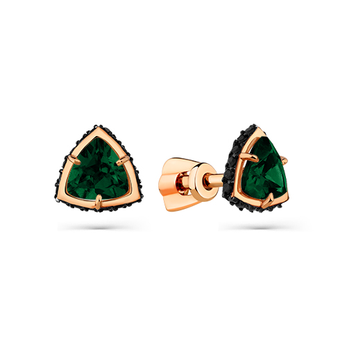 —Серьги пусеты из красного золота с турмалином и фианитами