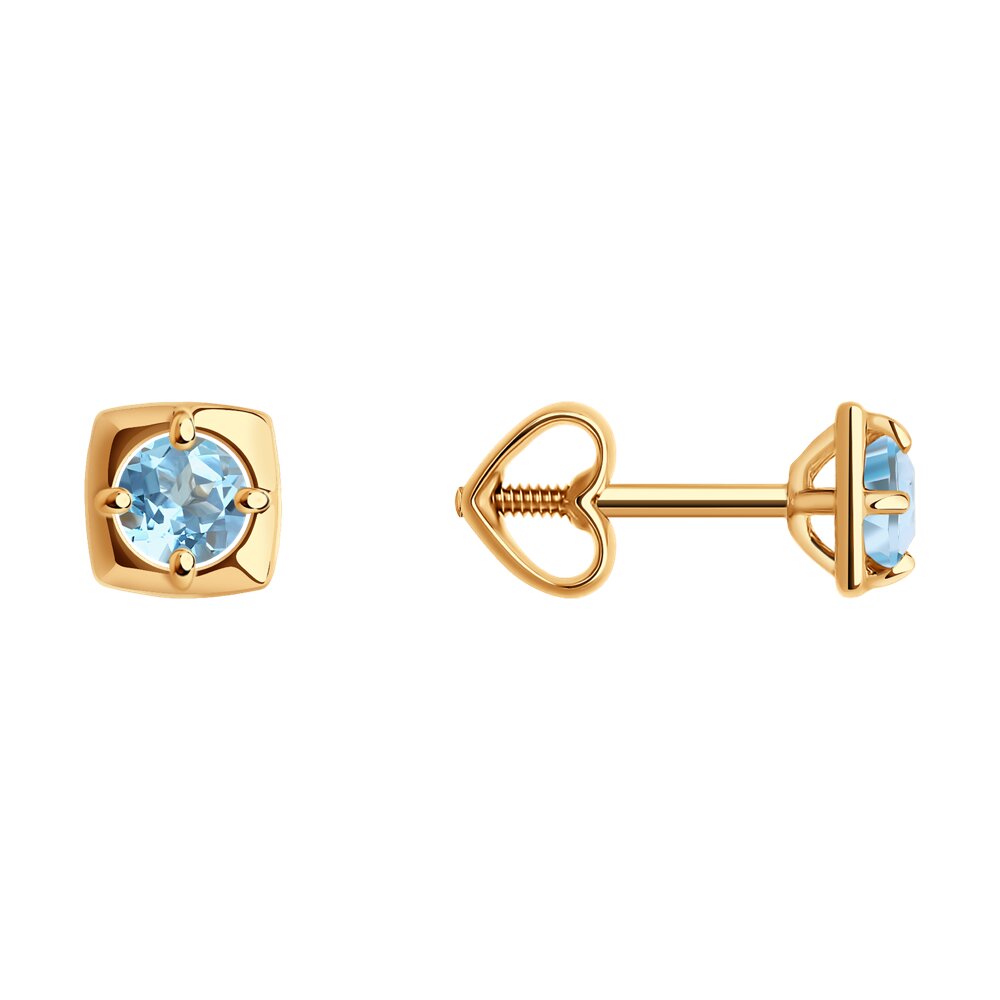 Нежные серьги пусеты с голубыми топазами выполнены из красного золота 585 пробы. Миниатюрные пусеты с чистым прозрачным сиянием камней на фоне глянцевого блеска золота подчеркнут очаровательный образ прекрасной обладательницы. Серьги идеально подойдут к повседневному наряду и станут неотъемлемой частью женственного образа. Покупайте серьги в подарок выгодно в магазинах Мир Золота.
