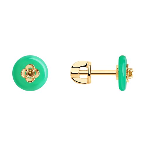 —Серьги пусеты из красного золота с хризопразом и фианитами