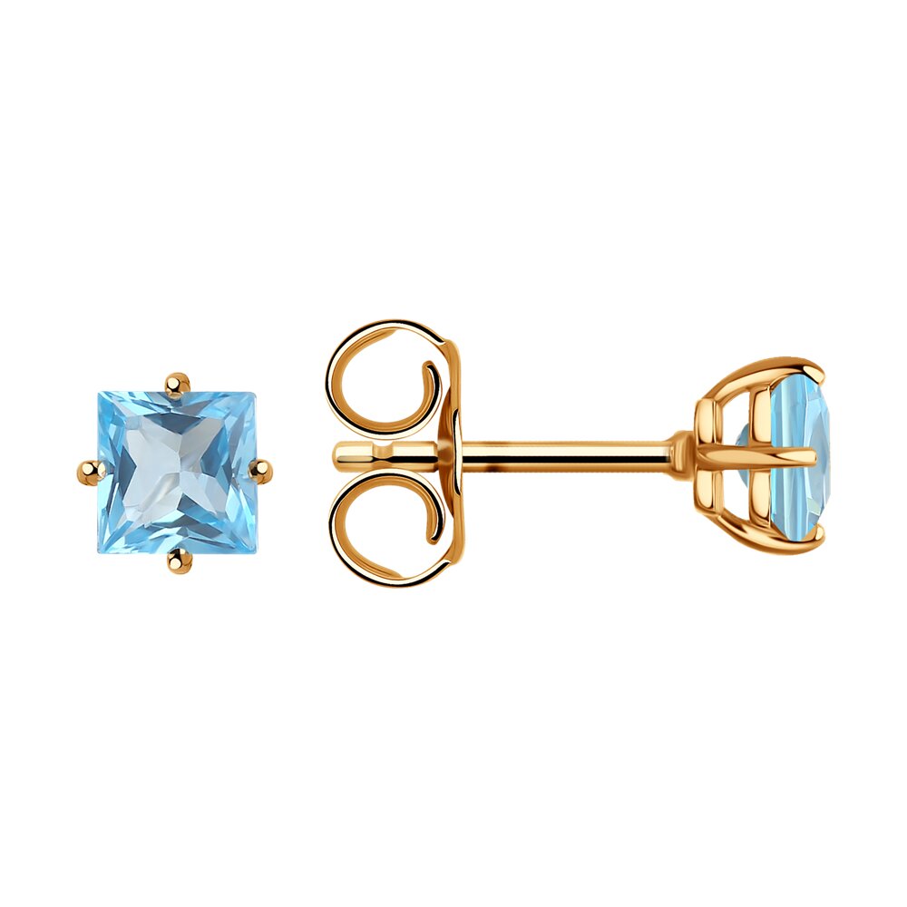 Миниатюрные серьги-пусеты из красного золота 585 пробы с натуральными топазами станут универсальным дополнением любого образа и наряда. Замечательные серьги с нежным прозрачным блеском голубых топазов квадратной формы огранки привлекательно смотрятся, и подчеркнут женственность и очарование владелицы. Приобретайте пусеты для себя или в подарок выгодно в магазинах Мир Золота.