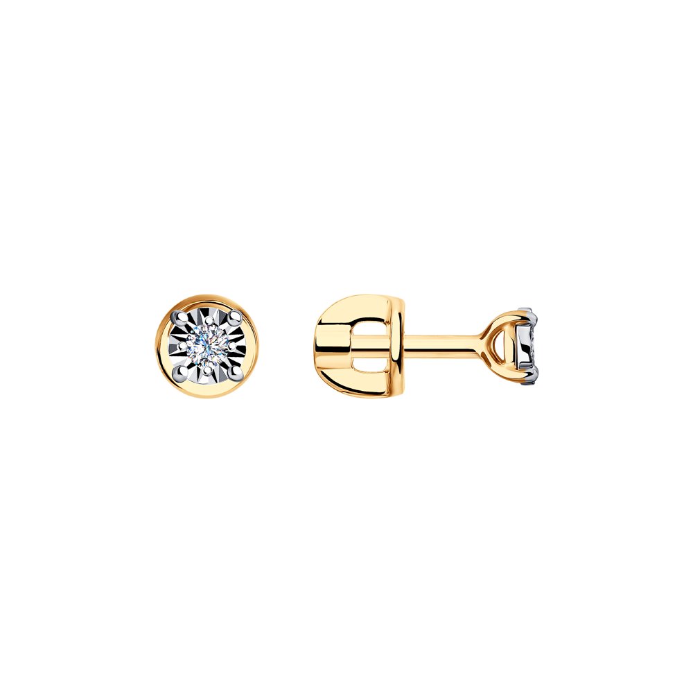 Серьги-пусеты с сияющими бриллиантами выполнены из красного золота 585 пробы. Пусеты украшены вставками из белого золота с алмазной гранью и прозрачными бриллиантами. Алмазная грань визуально увеличивают размер камней и усиливают их блеск. серьги с бриллиантами сделают образ женщины более привлекательным, и станут незаменимой деталью повседневного образа. Приобретайте красивые серьги по выгодным ценам в магазинах Мир Золота.