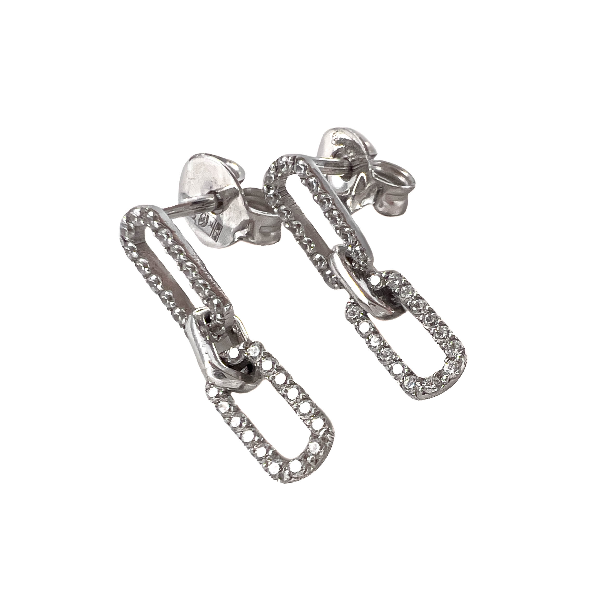 —Серьги пусеты из белого золота с фианитами