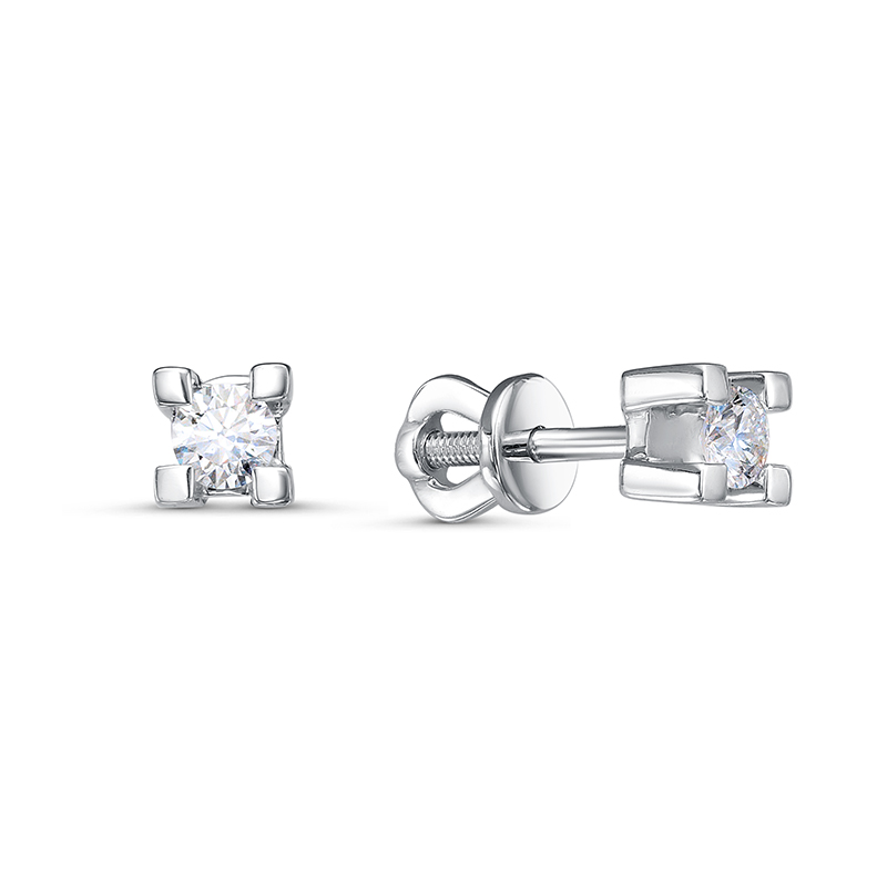 Серьги пусеты выполнены в современном дизайне из белого золота 585 пробы с натуральными бриллиантами. Эффектные закрепки выгодно акцентируют драгоценные камни, раскрывая их природную красоту и изысканное сияние. Универсальный дизайн будет уместно смотреться и с повседневными, и с вечерними нарядами. Приобретайте серьги в подарок по выгодной цене в магазинах Мир Золота.
