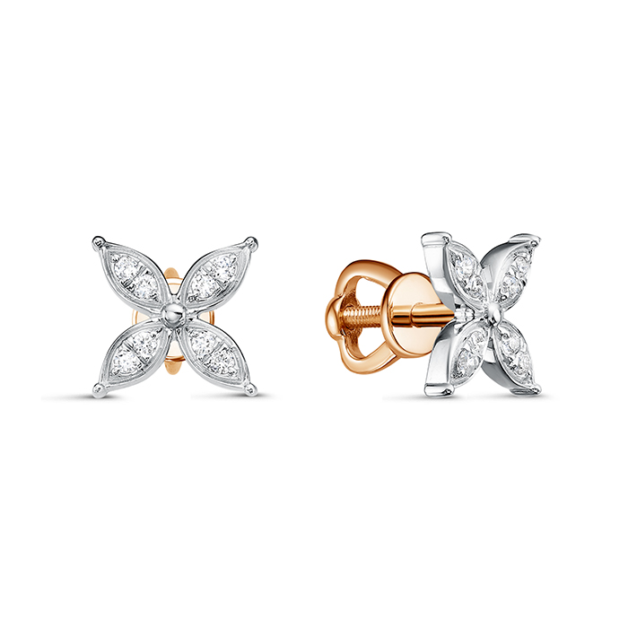 —Серьги пусеты из комбинированного золота с бриллиантами
