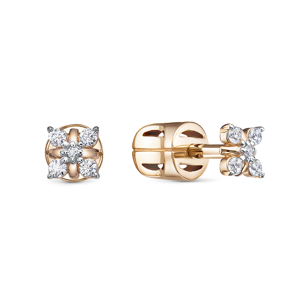 Серьги пусеты из красного золота 585 пробы выполнены в изящном дизайне с сияющими бриллиантами. Восхитительный блеск драгоценных камней привлекает внимание, и подчеркнет истинную женственность и утонченный вкус владелицы. Дополните свой привлекательный образ изысканным акцентом, приобретайте украшение выгодно в магазинах Мир Золота.