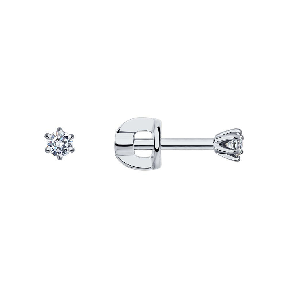 Миниатюрные серьги пусеты выполнены из белого золота 585 пробы с сияющими бриллиантами. Серьги лаконичного дизайна с нежным блеском драгоценных камней отлично дополнят повседневный стиль, и подчеркнут утонченность и очарование женского образа. Приобретайте ювелирное украшение в подарок по выгодным ценам в магазинах Мир Золота.