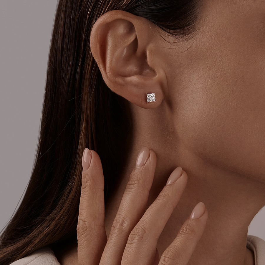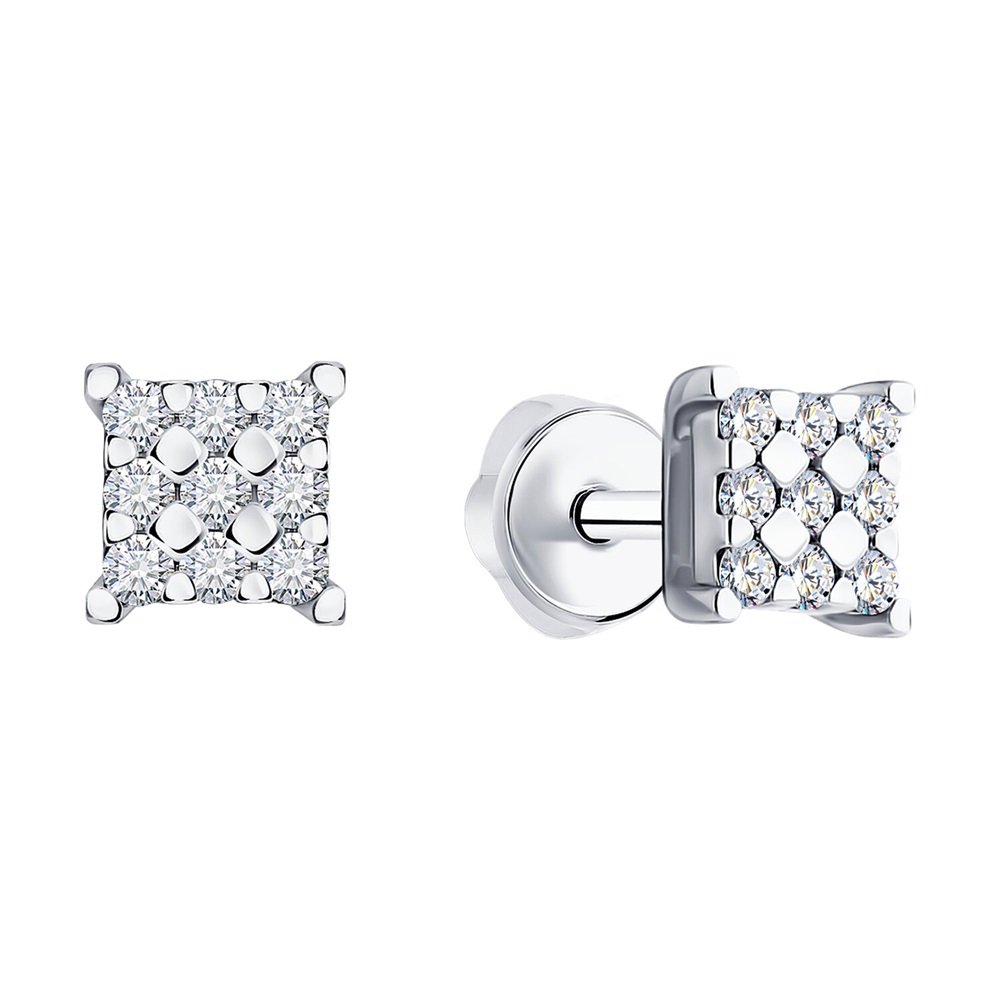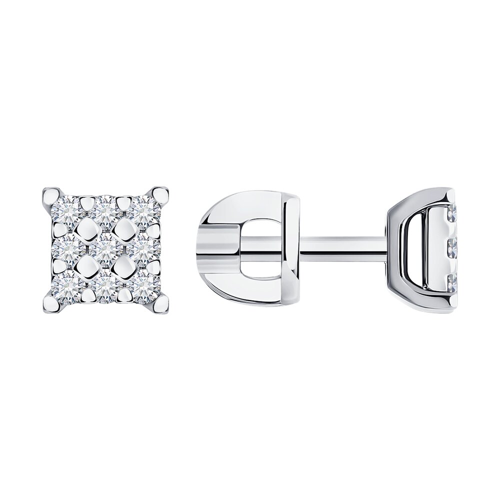 Стильные серьги пусеты квадратной формы с великолепными бриллиантами станут яркой деталью современного образа. Драгоценные бриллианты классической формы огранки эффектно подчеркнуты холодным блеском золота. Привлекательные серьги идеальны для повседневной носки, и будут радовать своим безупречным сиянием. Приобретайте актуальное украшение выгодно в магазинах Мир Золота.