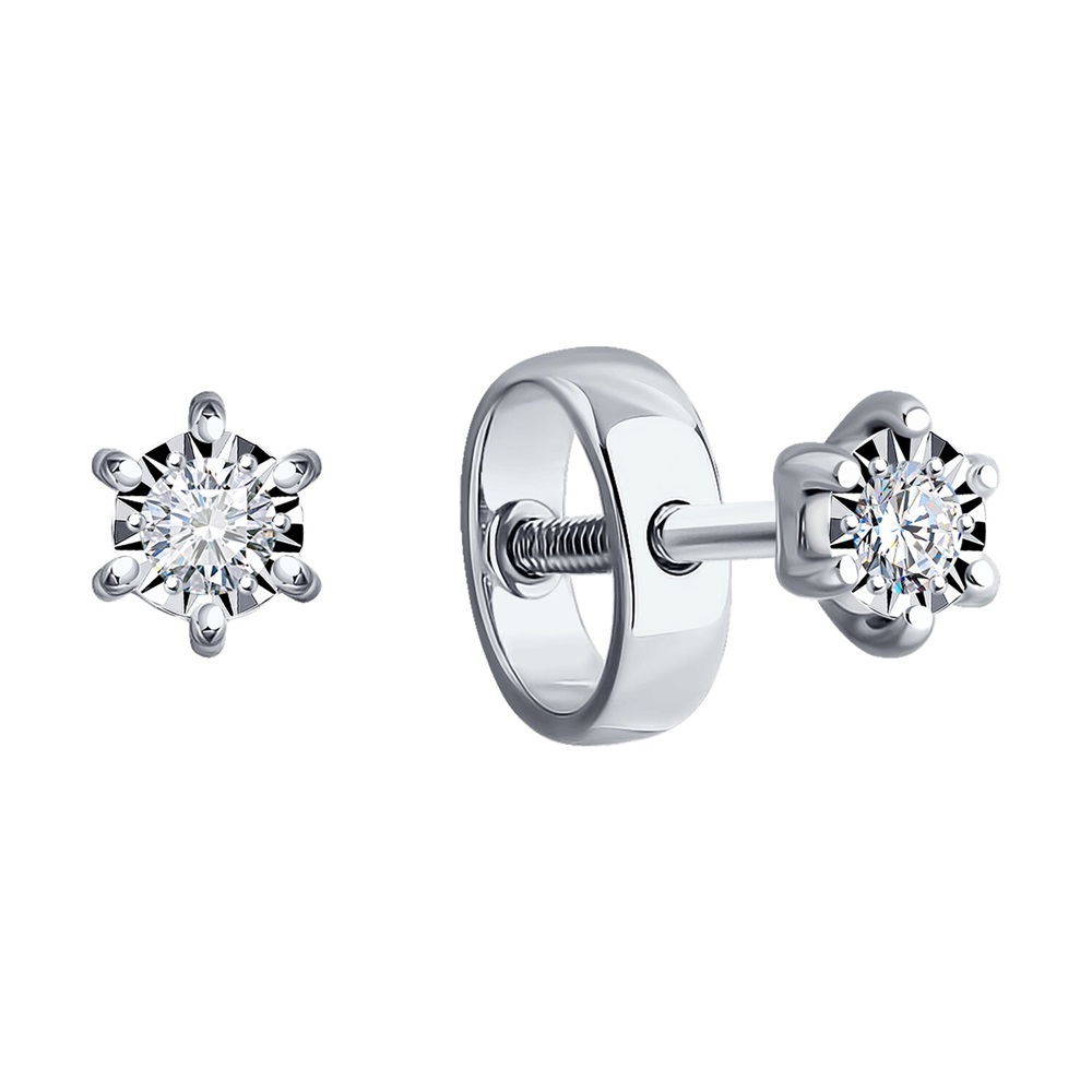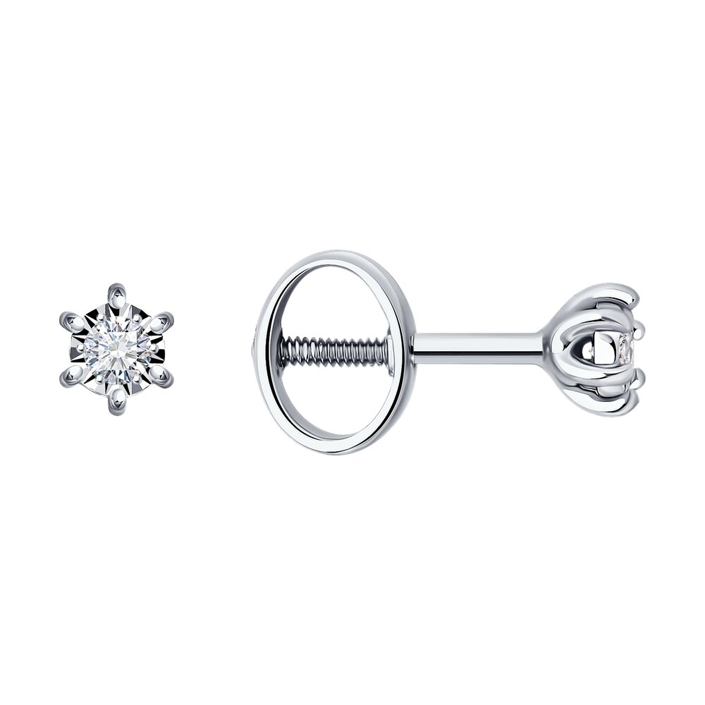 Миниатюрные Серьги пусеты из белого золота 585 пробы с бриллиантами станут изящным и нежным дополнением повседневных образов обладательницы. Легкие пусеты лаконичного дизайна с кристальным блеском драгоценных камней комфортно сидят на ушке, и будут актуальны в любой ситуации. Приобретайте серьги по выгодной цене в магазинах Мир Золота.