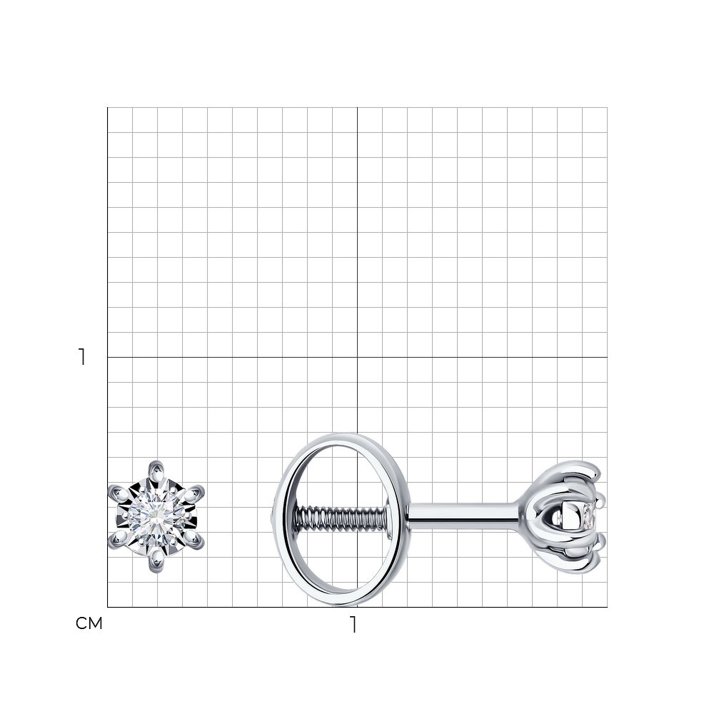 Серьги пусеты из белого золота с бриллиантами