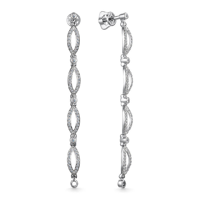 Серьги пусеты с подвесками с изысканным блеском бриллиантов в оригинальном современном исполнении из белого золота 585 пробы. Пусеты-трансформеры станут универсальным и практичным аксессуаром для своей владелицы, и порадуют возможностью адаптировать украшение под нужный гардероб, позволяя легко превратить дневной образ в элегантный вечерний. Приобретайте актуальное украшение по выгодным ценам в магазинах Мир Золота.