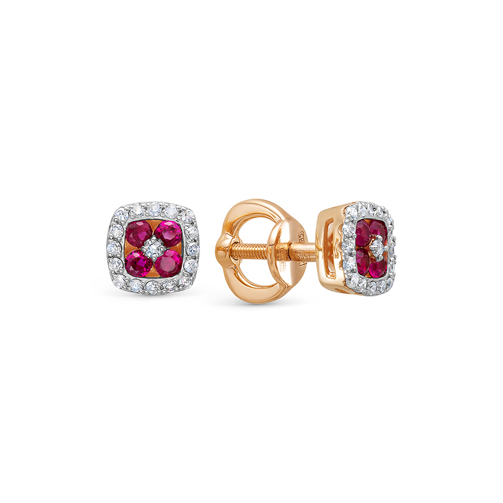 —Серьги-пусеты из красного золота с рубинами и бриллиантами