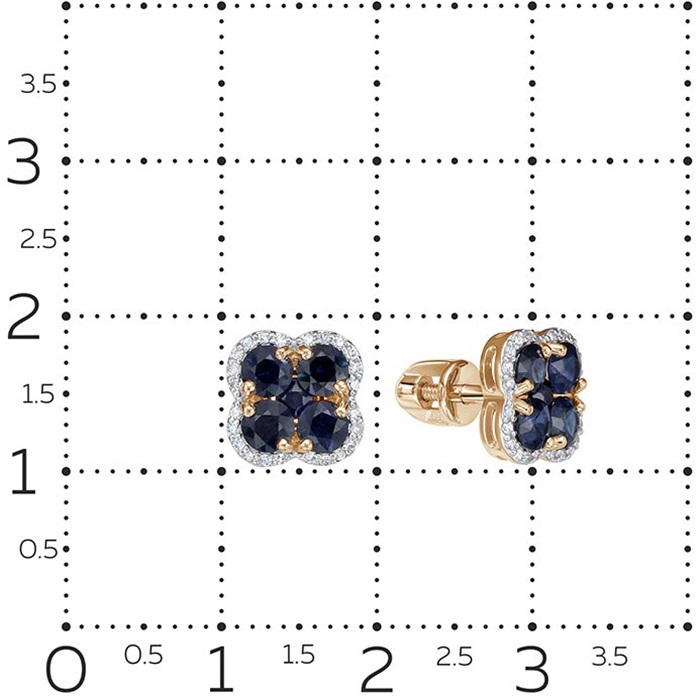 —Серьги пусеты из красного золота с сапфирами и бриллиантами