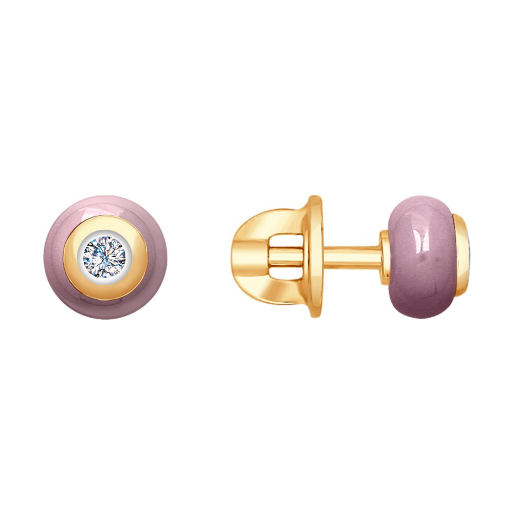 Серьги пусеты из красного золота с бриллиантами и керамикой