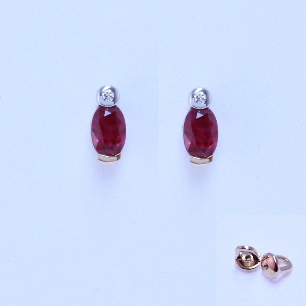 —Серьги-пусеты из красного золота с рубинами и бриллиантами