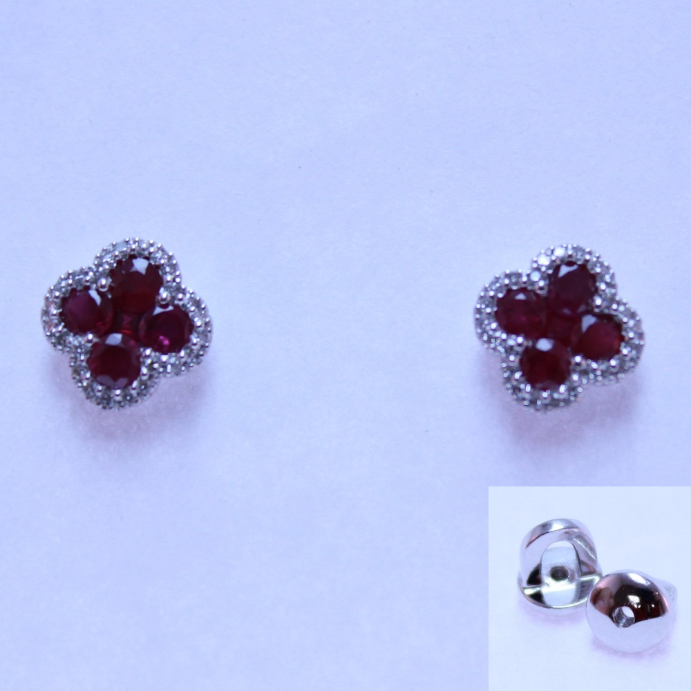 —Серьги пусеты из белого золота с рубинами и бриллиантами