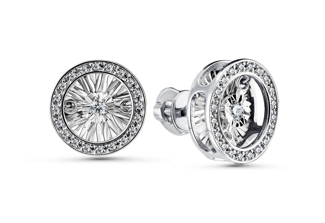 —Серьги пусеты из белого золота с танцующим бриллиантом