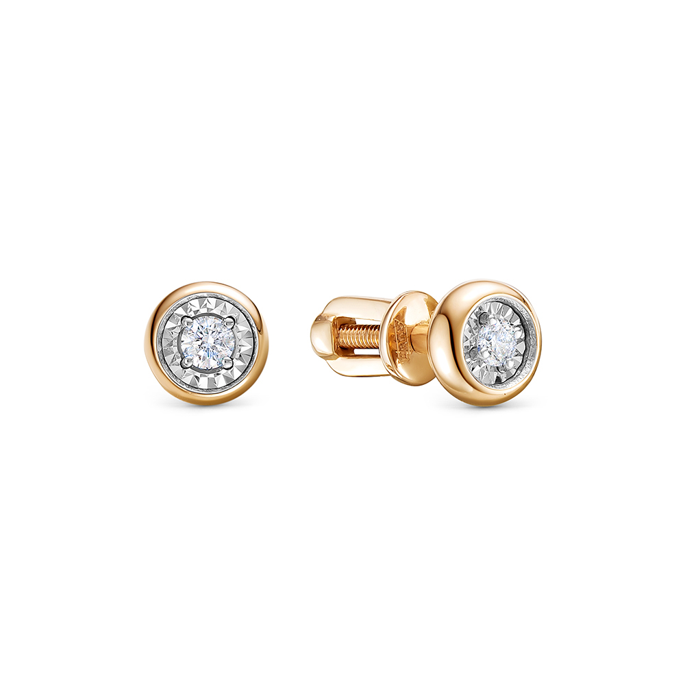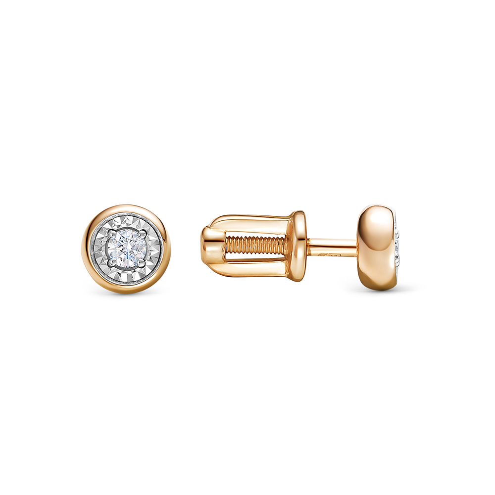 Серьги пусеты лаконичной формы выполнены в современном минималистичном дизайне из красного золота 585 пробы с сияющими бриллиантами. Эффектный блеск алмазных граней визуально увеличивает размер бриллиантов, усиливая их блеск и раскрывая неповторимую природную красоту. Приобретайте ювелирное украшение в подарок по выгодной цене в магазинах Мир Золота.