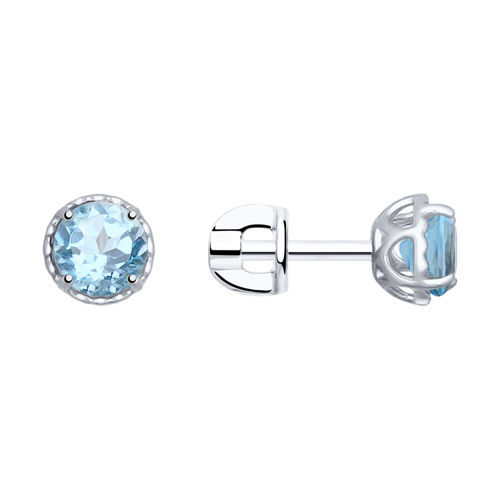 Серьги пусеты с натуральными голубыми топазами выполнены из белого золота 585 пробы. Чудесные нежные топазы привлекательно смотрятся в оправе из благородного золота, и добавят женскому образу нотку неповторимого шарма и очарования. Серьги с комфортной застежкой идеальны для повседневной носки, и понравятся поклонницам минимализма. Приобретайте пусеты в подарок, выгодно в магазинах Мир Золота.