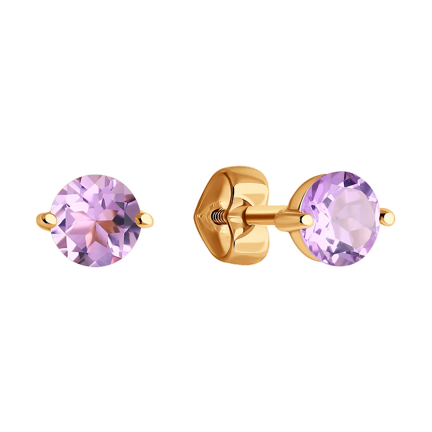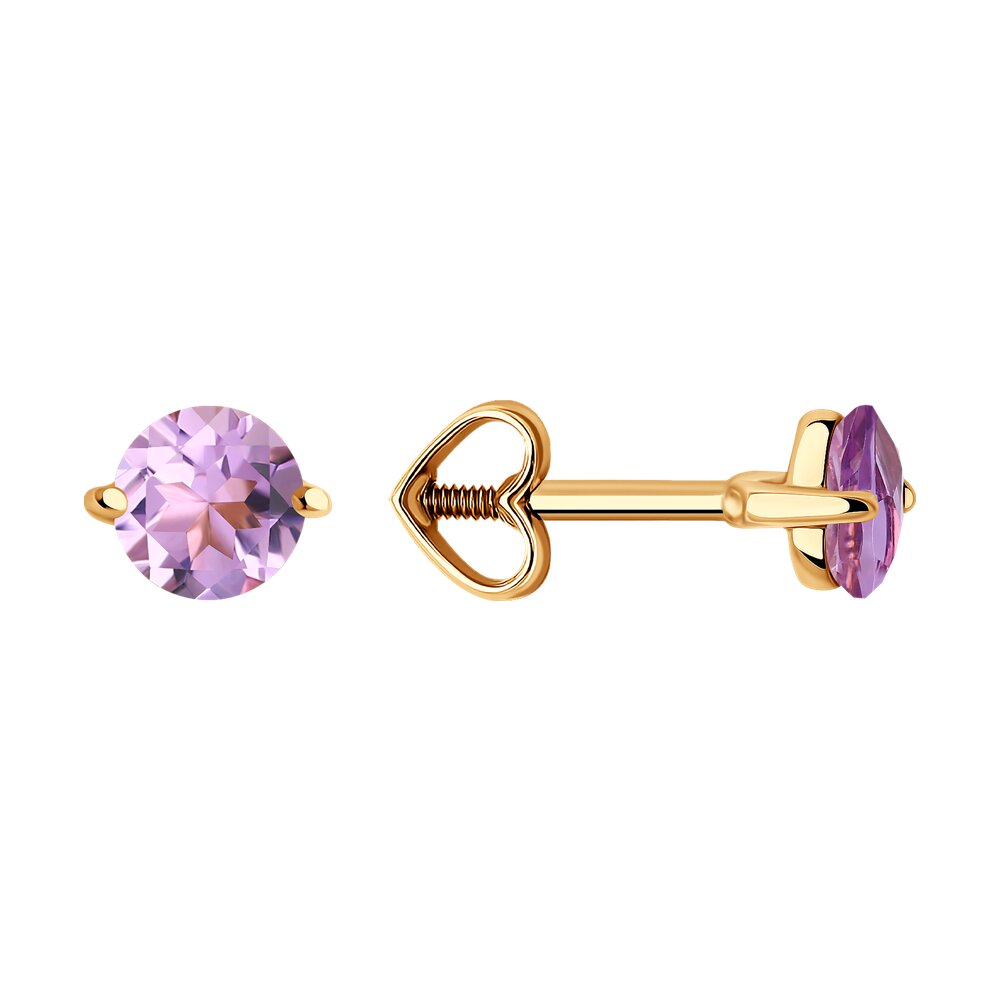 Серьги пусеты с натуральными аметистами выполнены из красного золота 585 пробы. Нежные камни привлекательно смотрятся в оправе из благородного золота, и добавят женскому образу нотку неповторимого шарма и очарования. Серьги с комфортной застежкой идеальны для повседневной носки, и понравятся поклонницам минимализма. Приобретайте пусеты в подарок выгодно в магазинах Мир Золота.