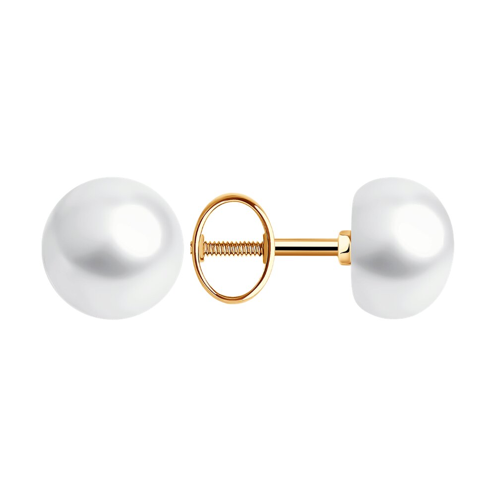 Серьги-пусеты из красного золота с жемчугом