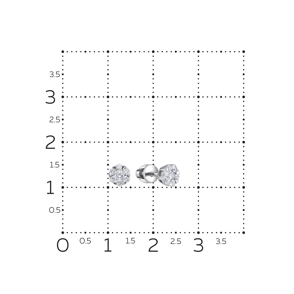 Прекрасные серьги-пусеты из белого золота 585 пробы с великолепными бриллиантами. Пусеты украшены изящной композицией из прозрачных камней идеальной круглой огранки. Превосходное украшение с переливчатым блеском бриллиантов придаст образу женственности, шарма и очарования. Приобретайте серьги по выгодным ценам в магазинах Мир Золота.