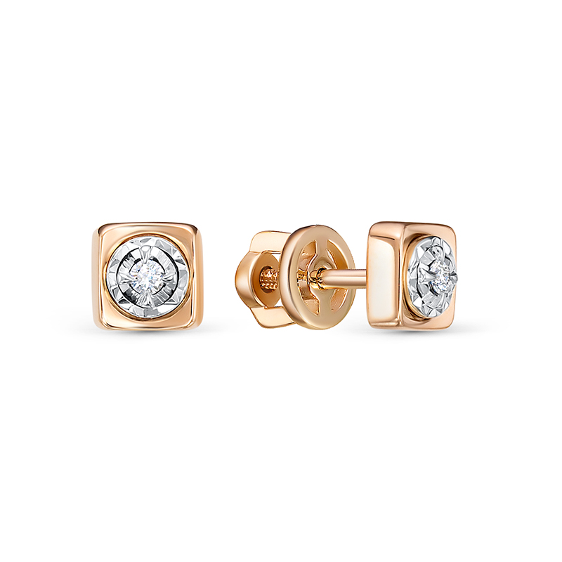 —Серьги-пусеты из красного золота с бриллиантами